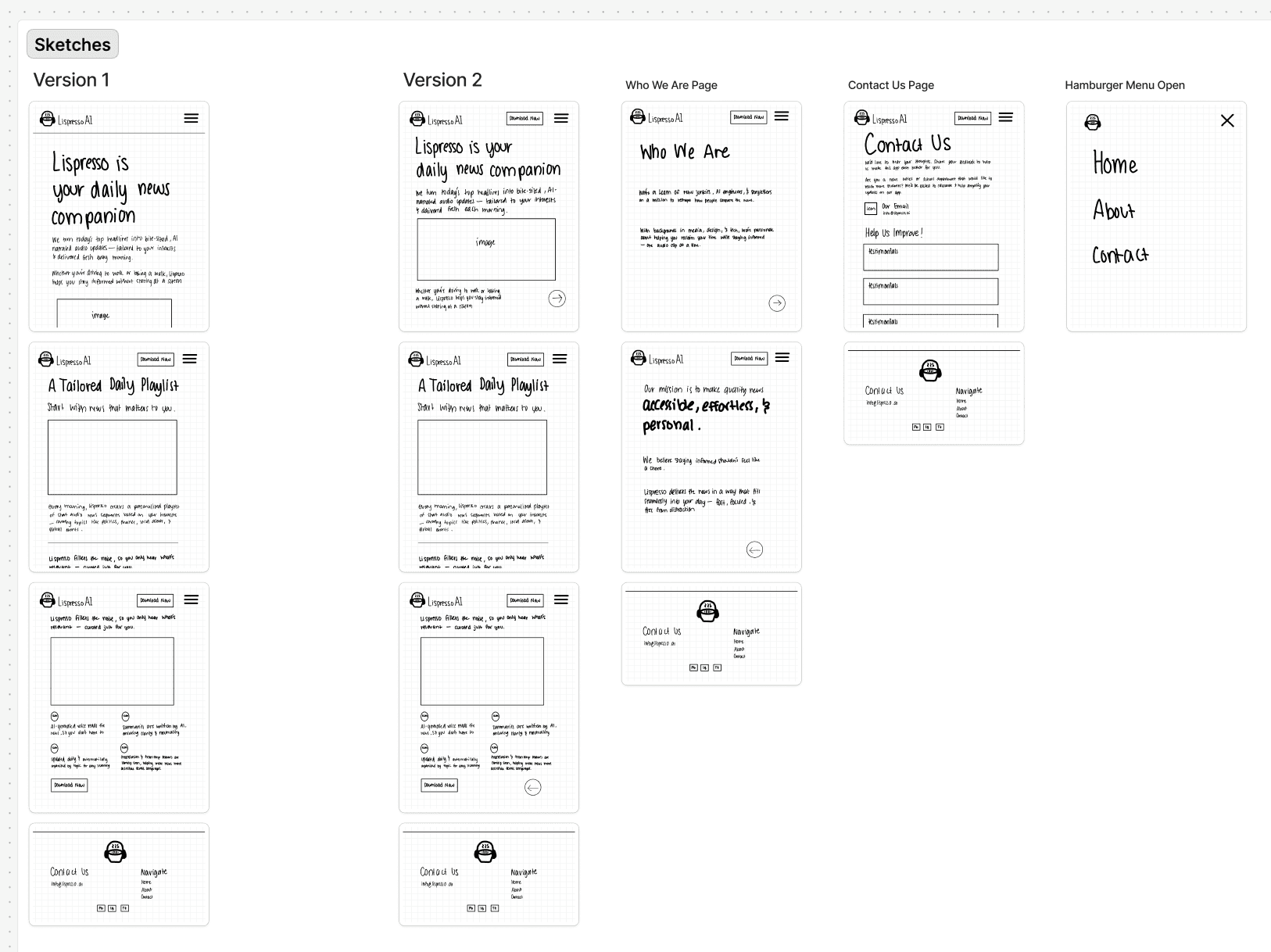 Translating research into sketch mockups allowed for efficient content hierarchy testing before moving forwards into low fidelity wireframes.